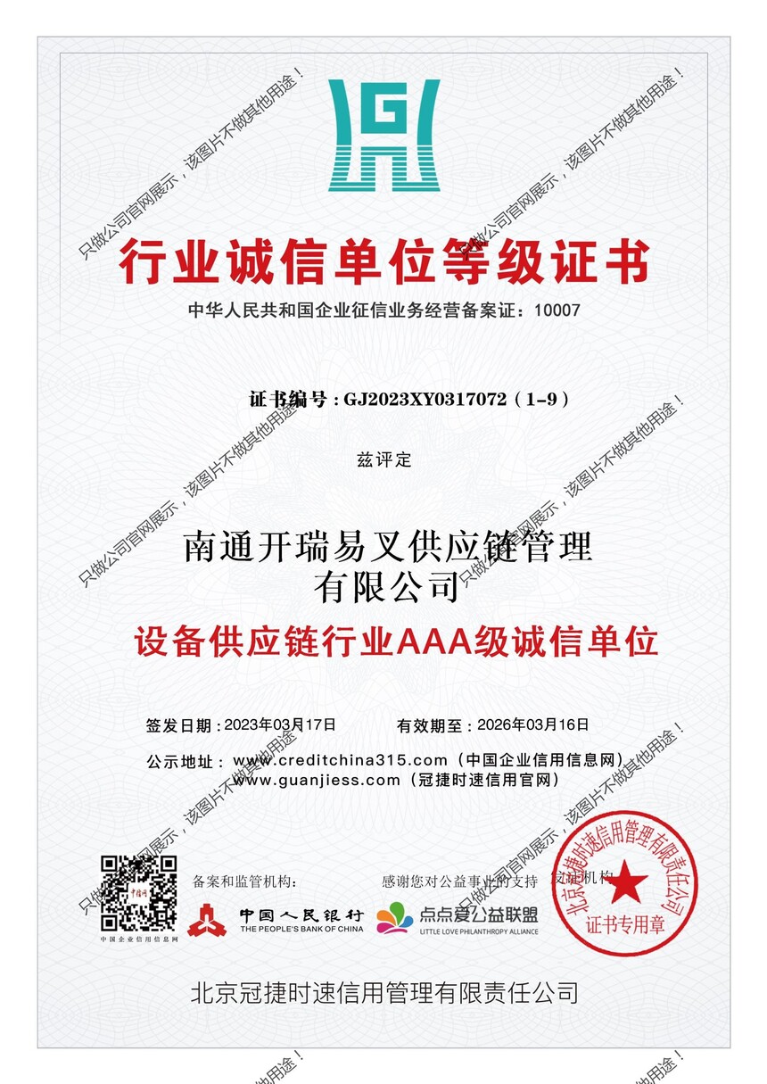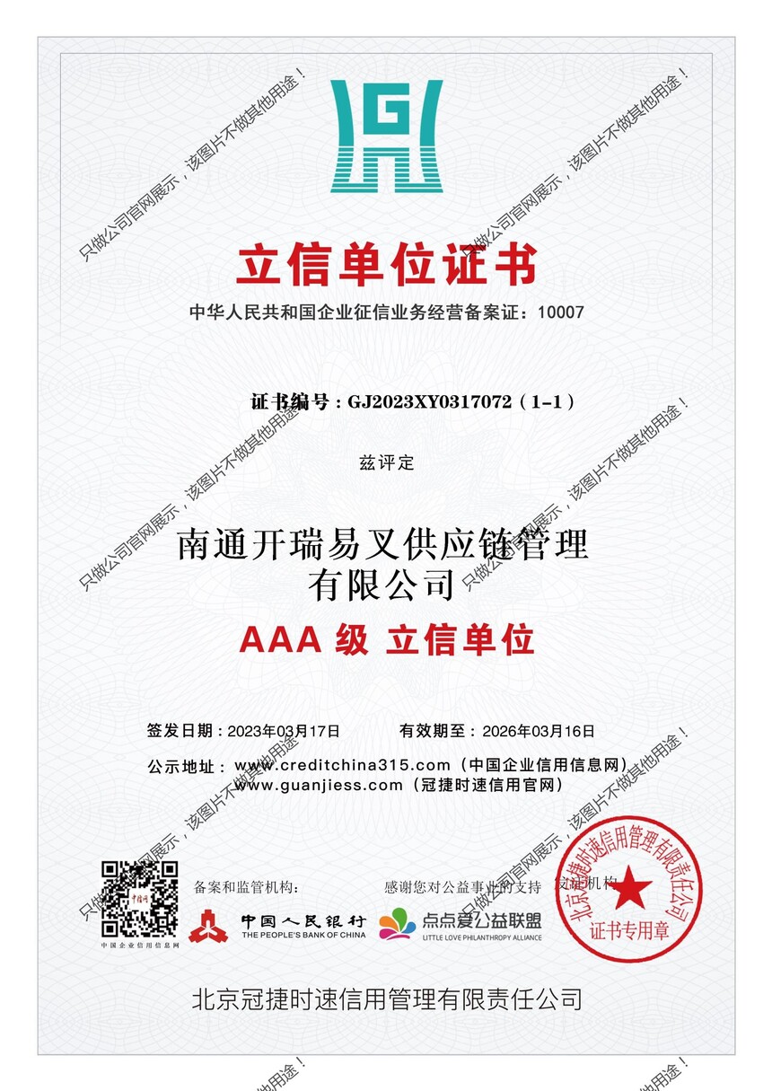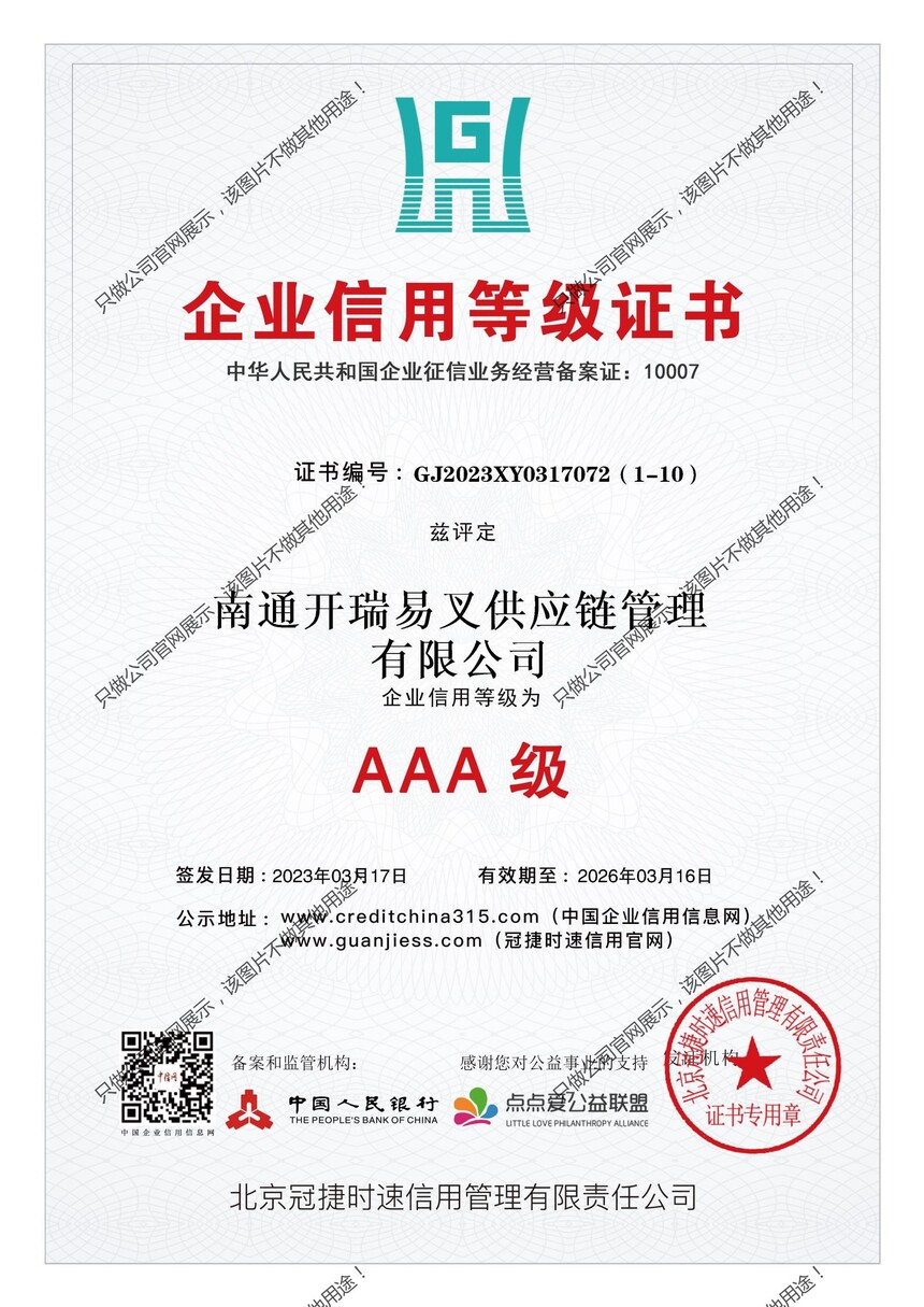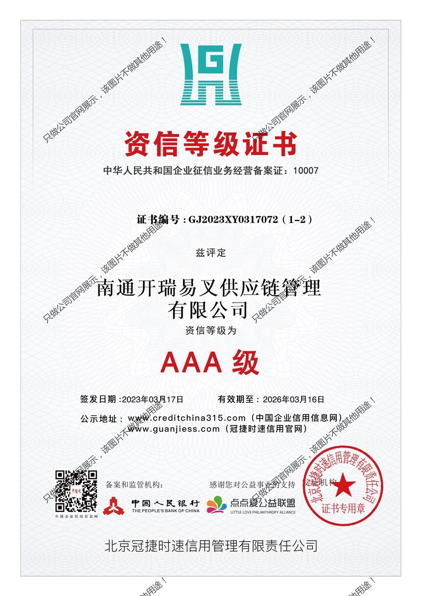 中国人民银行3A等级证书