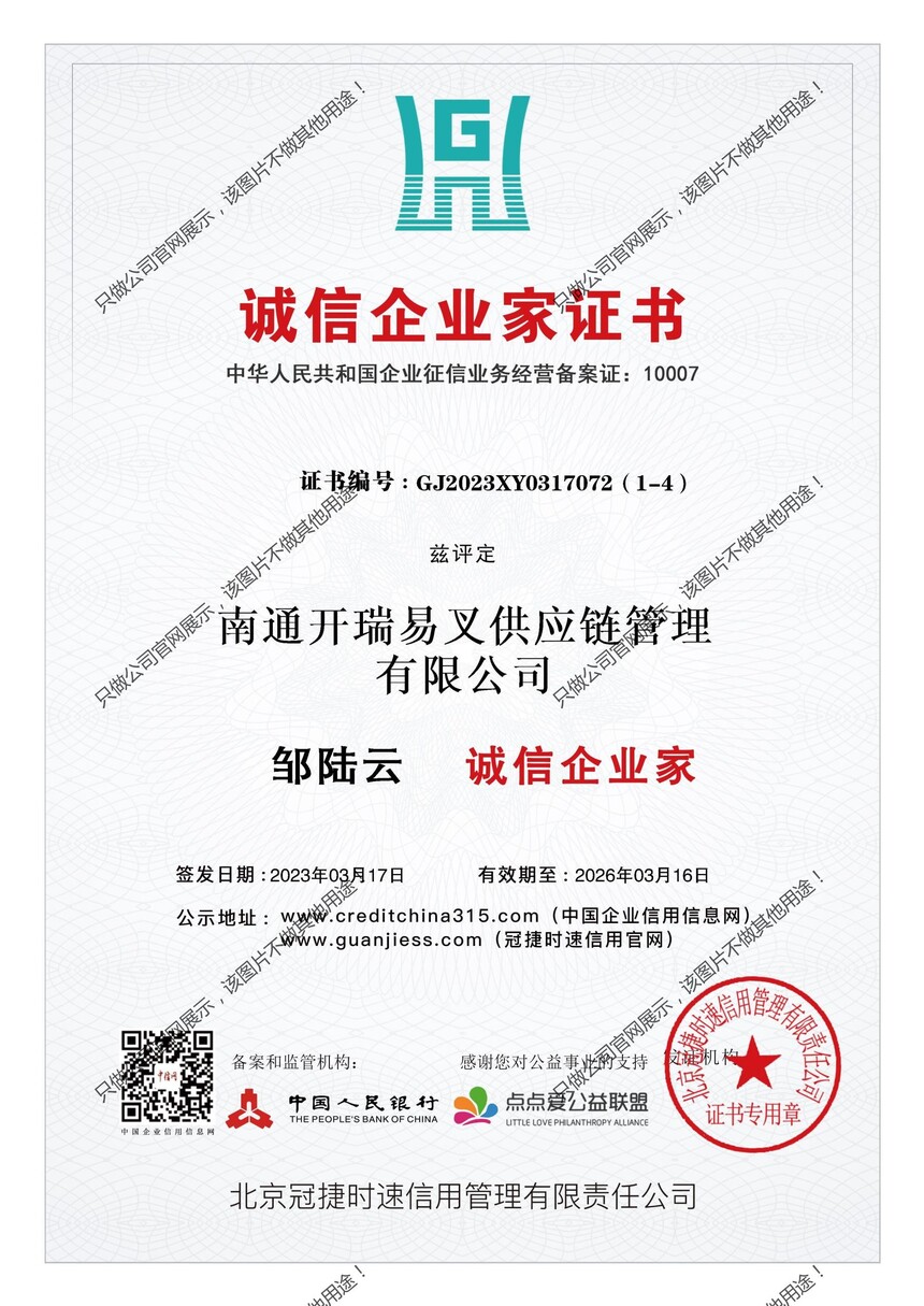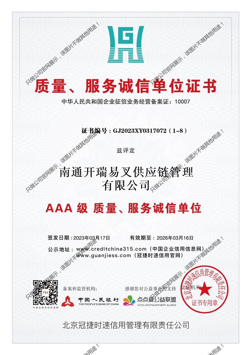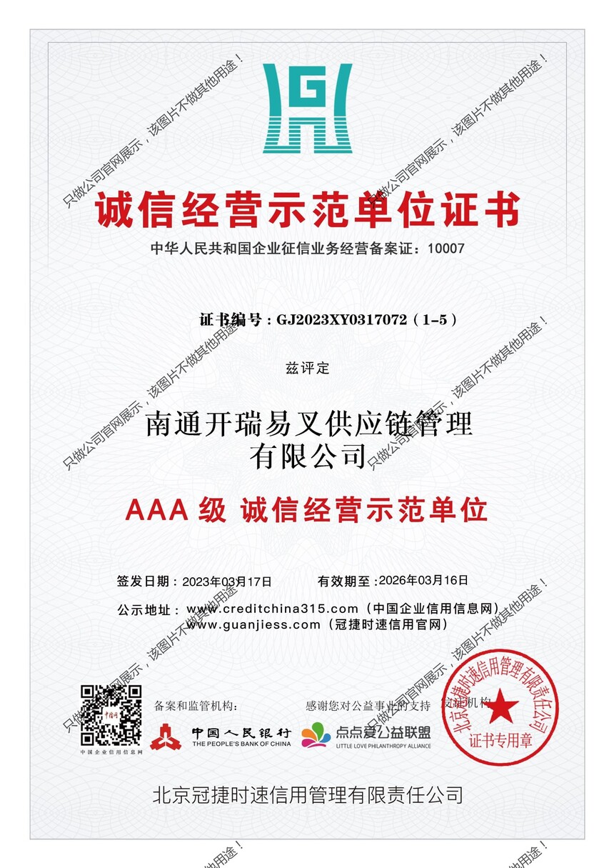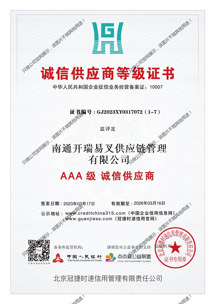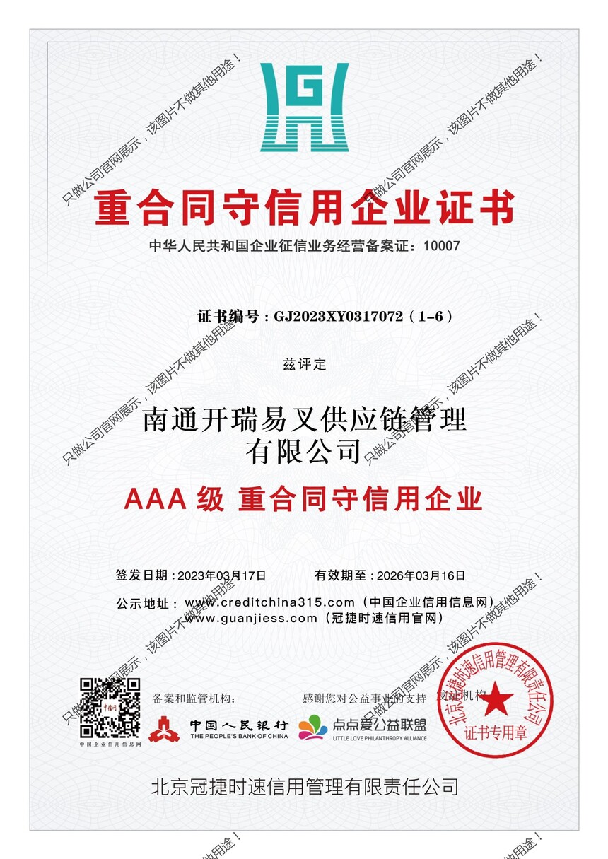 中国人民银行3A等级证书